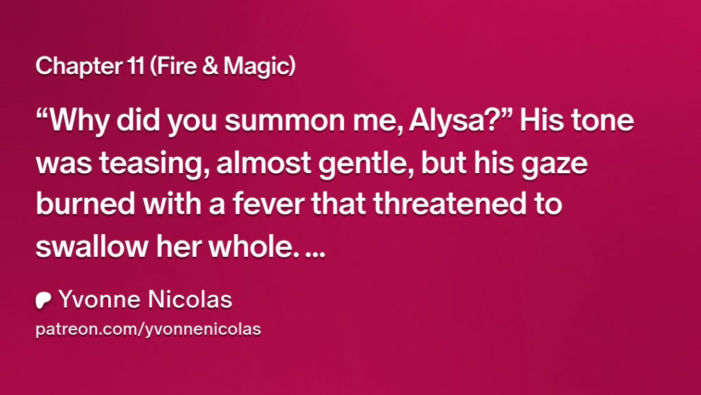 “Why did you summon me, Alysa?” His tone was teasing, almost gentle, but his gaze burned with a fever that threatened to swallow her whole.